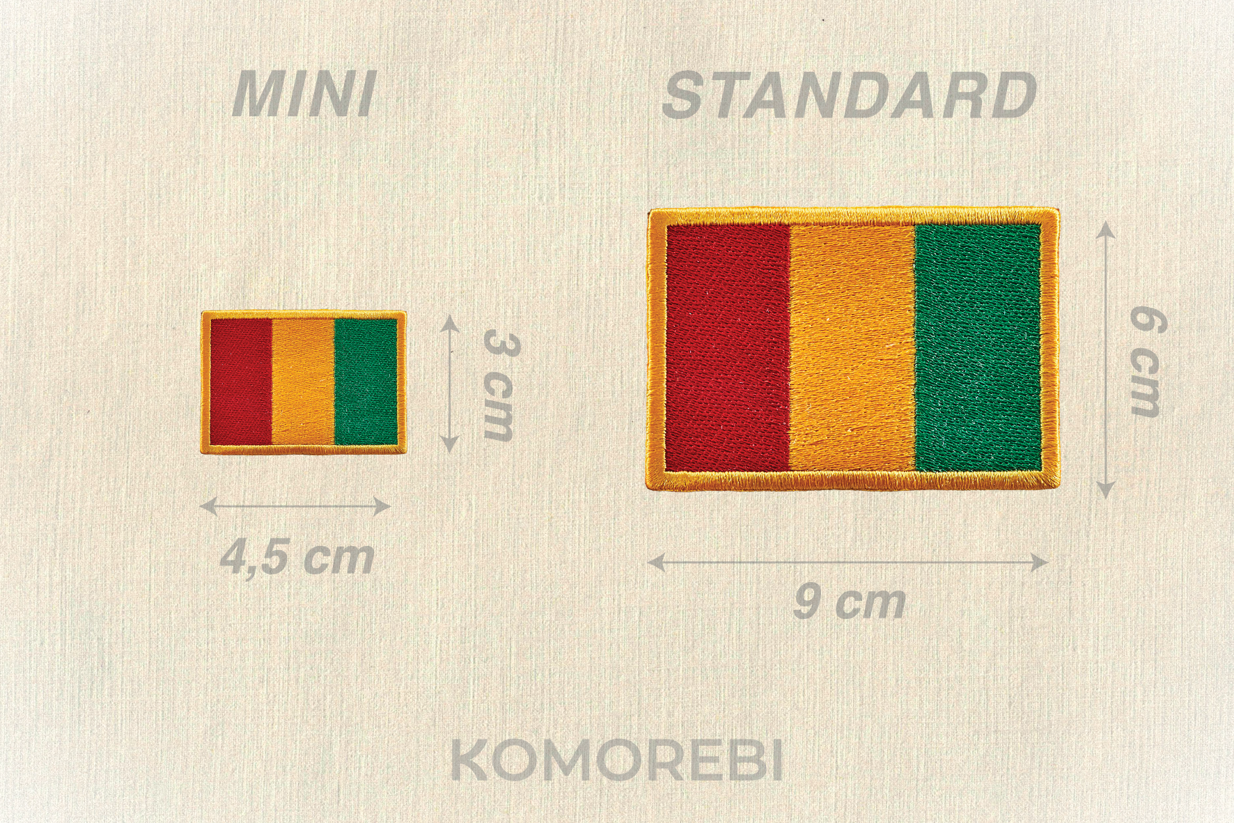 Chaque drapeau est à coudre - possibilité d'inclure un velcro mâle cousu.