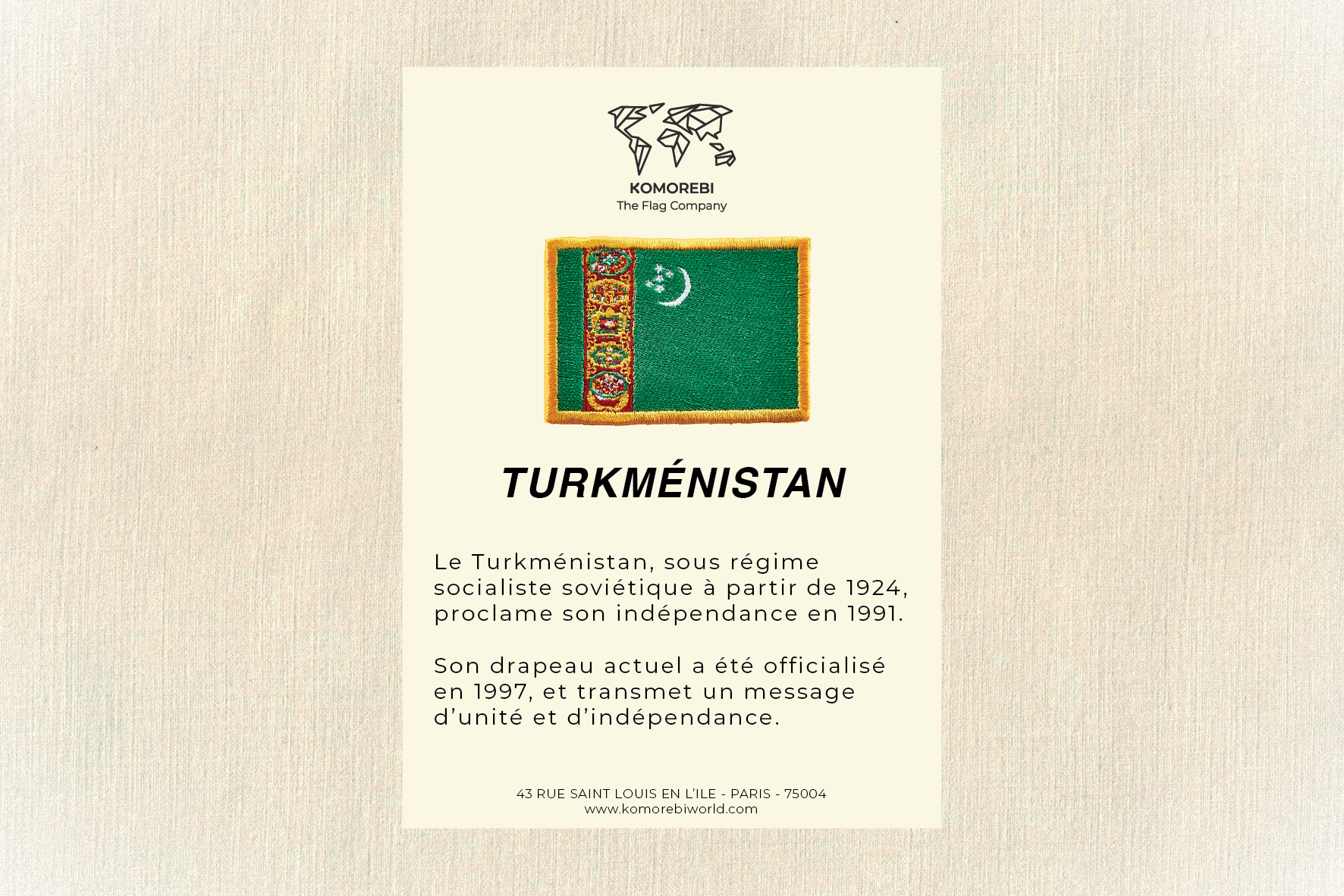 Turkménistan - Drapeau Brodé