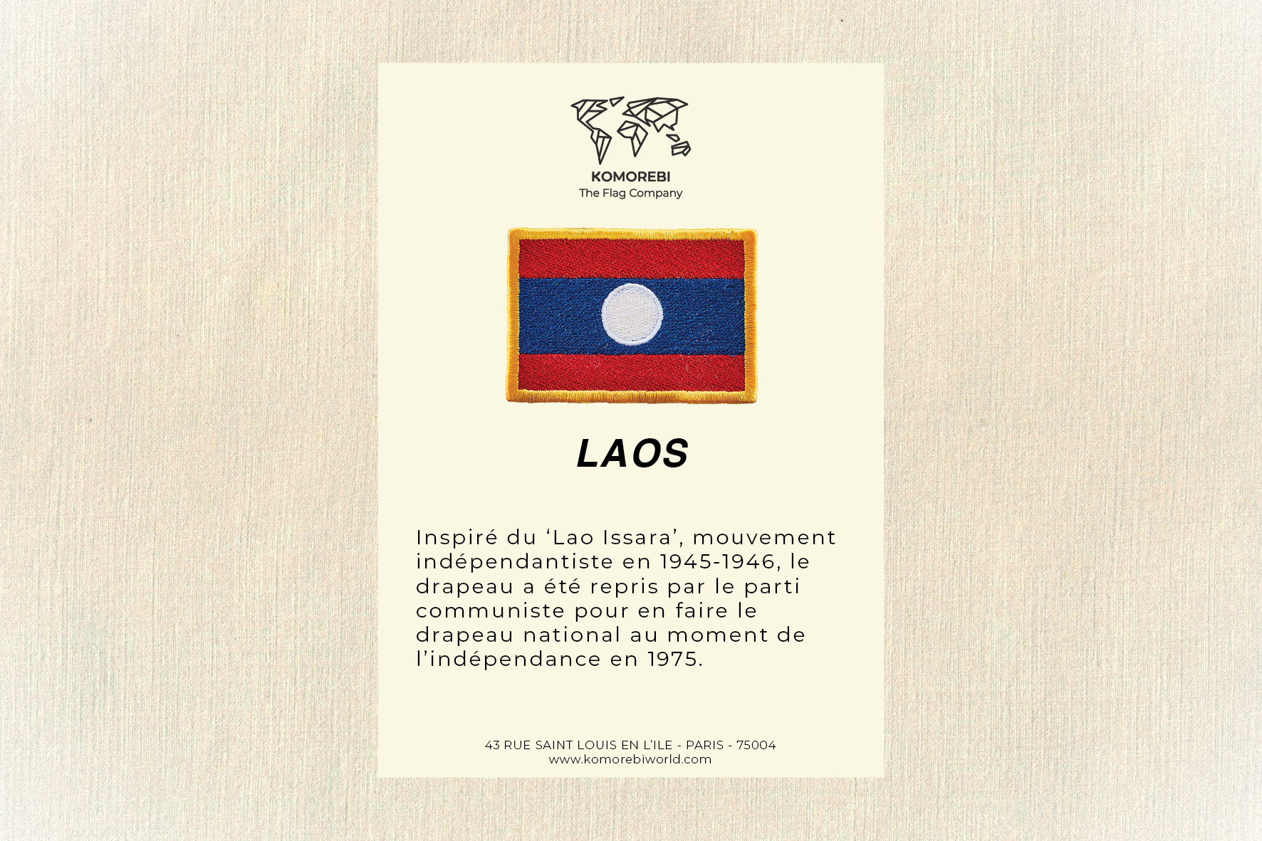 Laos - Drapeau Brodé